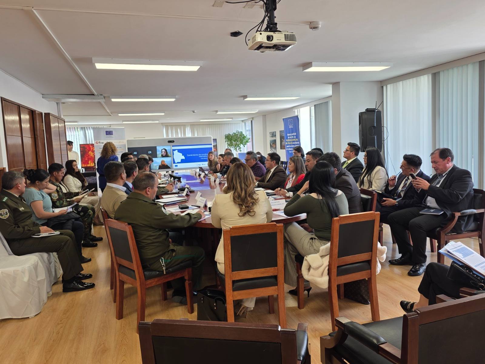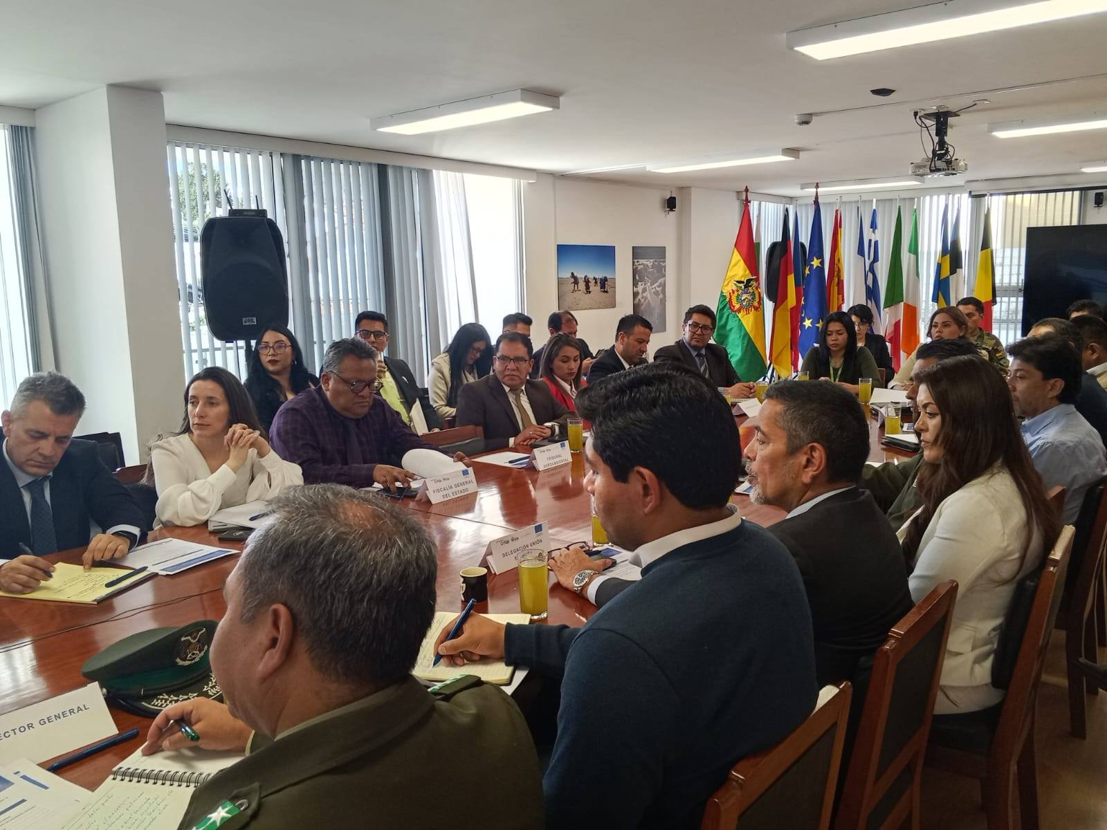 La reunión se llevó a cabo en instalaciones de la Delegación de la Unión Europea en Bolivia, en la ciudad de La Paz, y tuvo como objetivo fortalecer la coordinación operativa interinstitucional, realizar el análisis técnico de las acciones ejecutadas y efectuar el seguimiento a la implementación del plan de trabajo.