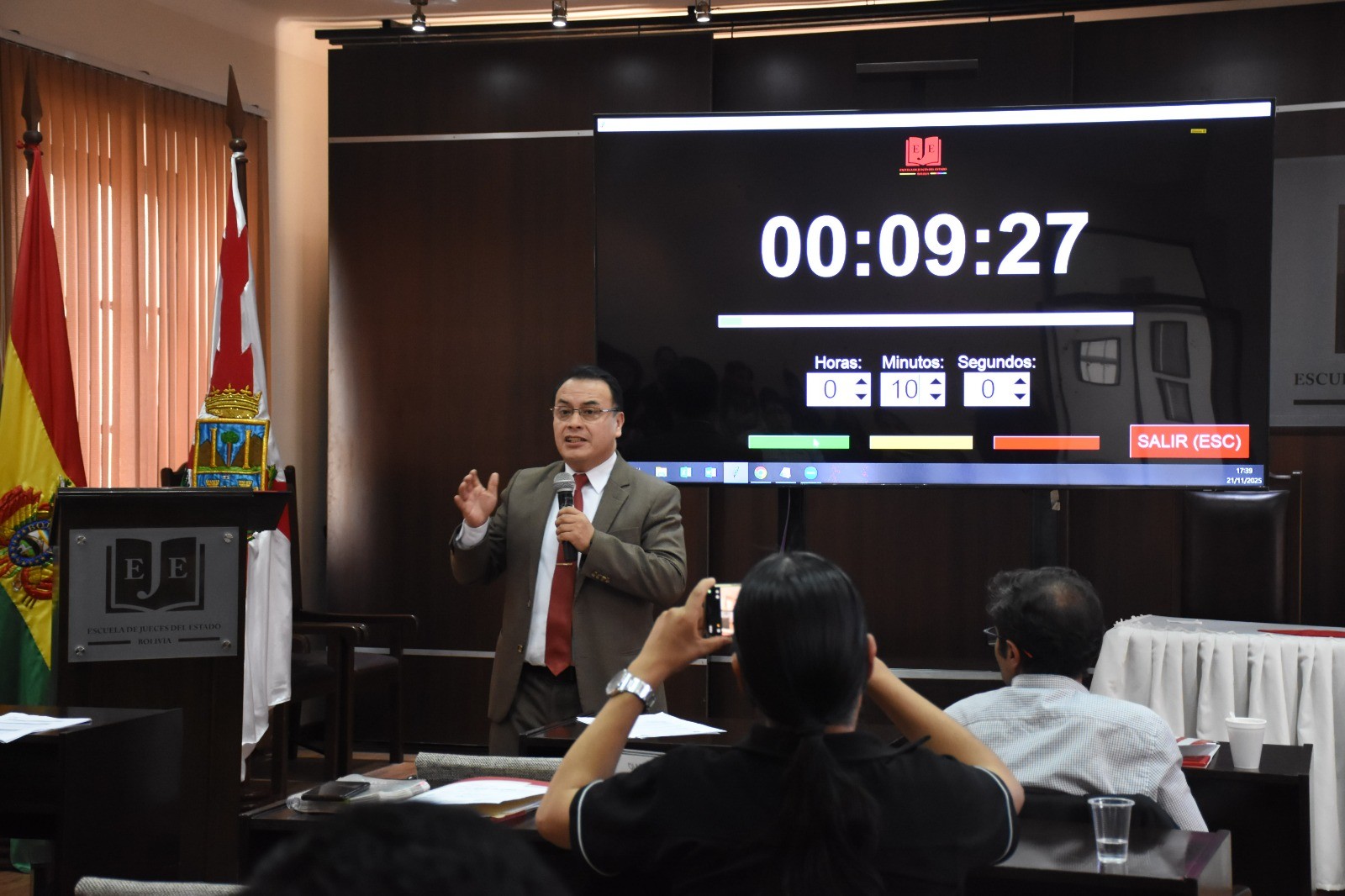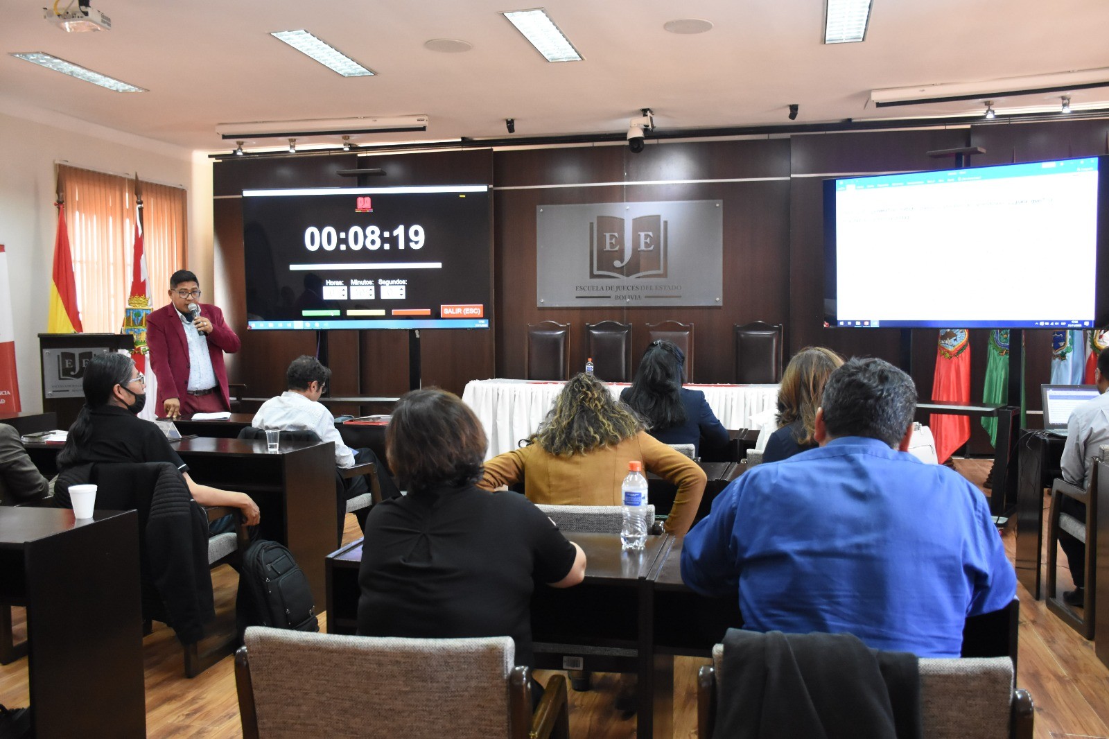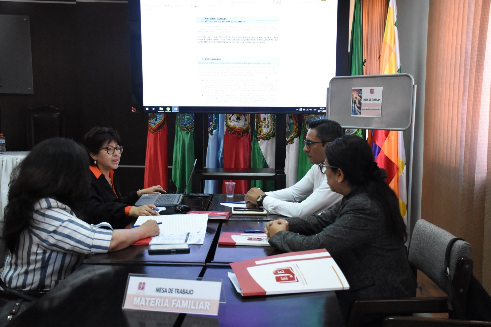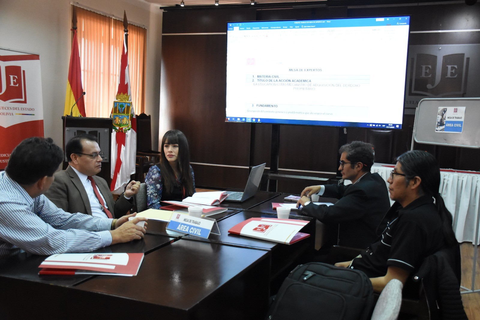 Durante la actividad, los docentes y expertos trabajaron de manera articulada en materias que compete a la jurisdicción como: Penal, Civil, Familia, Laboral, Tributaria, Agroambiental, Niñez y Adolescencia, abordando las acciones académicas, la definición de propósitos, la validación de contenidos, la construcción de competencias y la metodología de desarrollo de cada acción.