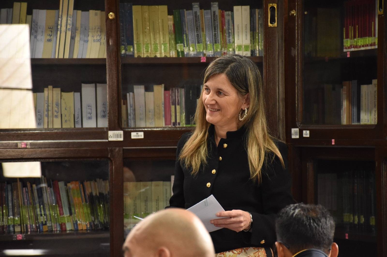 En la apertura de la actividad, la Dra. Marina Durán Miranda, directora de la Escuela de Jueces del Estado, dio la bienvenida a los expertos internacionales, destacando su amplia trayectoria profesional y su valioso aporte en el ámbito de la cooperación judicial. En sus palabras, resaltó que María Antonia Díez García es una excelente Magistrada del área judicial de España, cuya experiencia contribuye significativamente al fortalecimiento de la formación de los estudiantes, por lo que la Escuela de Jueces agradece el apoyo brindado a la academia.