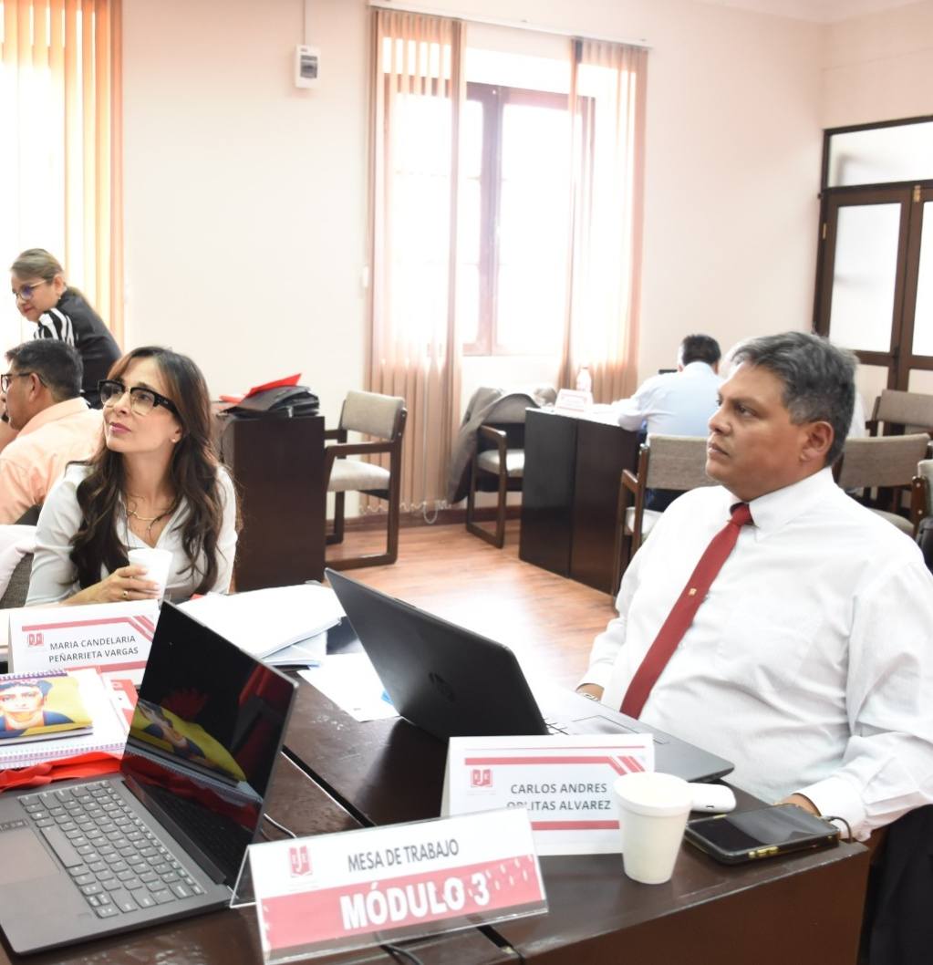 Durante el taller, las y los participantes abordaron contenidos vinculados a la malla curricular, modelo pedagógico institucional, la metodología en la formación, al principio de la independencia, la ética e integridad en la función, así como el uso de herramientas de apoyo a la enseñanza, en el marco del proceso formativo del Cuarto Curso de Formación y Especialización en el área ordinaria.