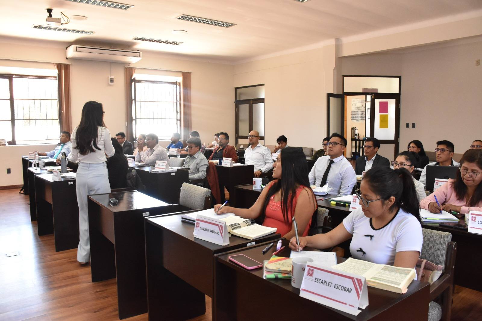 La unidad académica es impartida por la Dra. María Candelaria Peñarrieta Vargas, Juez de Sentencia del Tribunal Departamental de Justicia de Tarija, quien actualmente ejerce funciones como docente del Módulo de Especialidad Penal en el marco del proceso formativo dirigido a las y los futuros administradores de justicia.