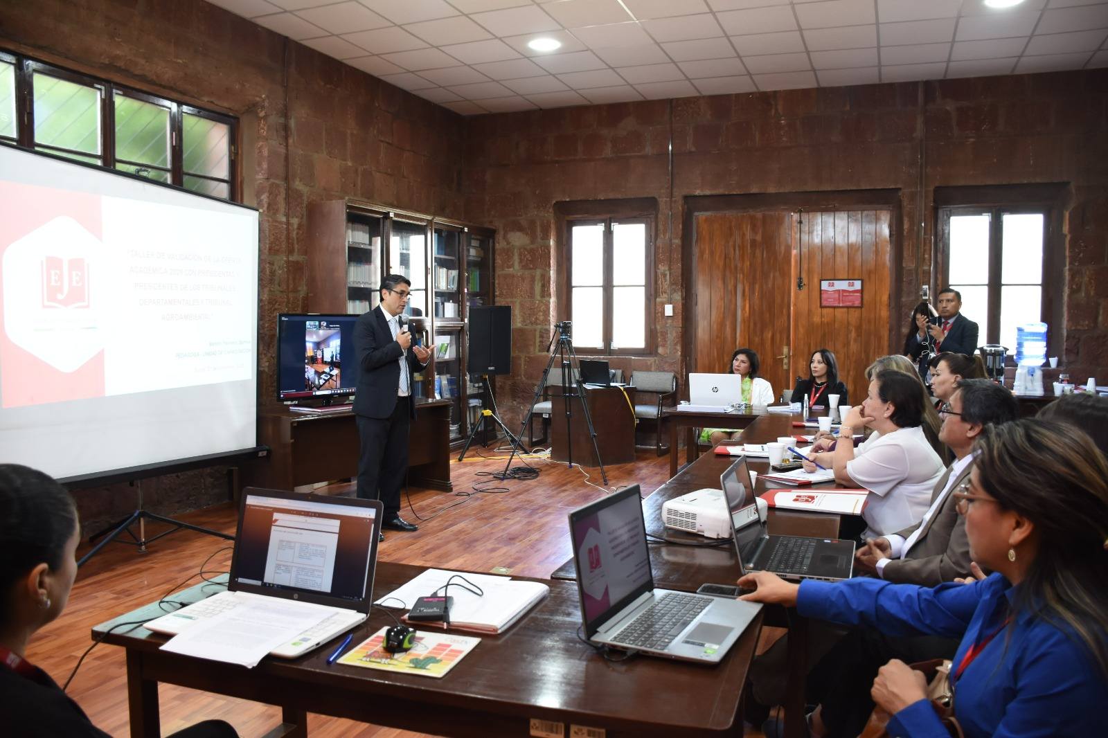 Durante la actividad, Presidentes del Tribunal Departamental de Justicia, Vocales, y equipos técnicos analizaron de manera conjunta el Plan Académico Anual, a desarrollarse en la gestión 2026, autoridades judiciales evaluaron la pertinencia, relevancia e importancia de los contenidos académicos, con el propósito de priorizar aquellos que respondan a las necesidades actuales del sistema de justicia.