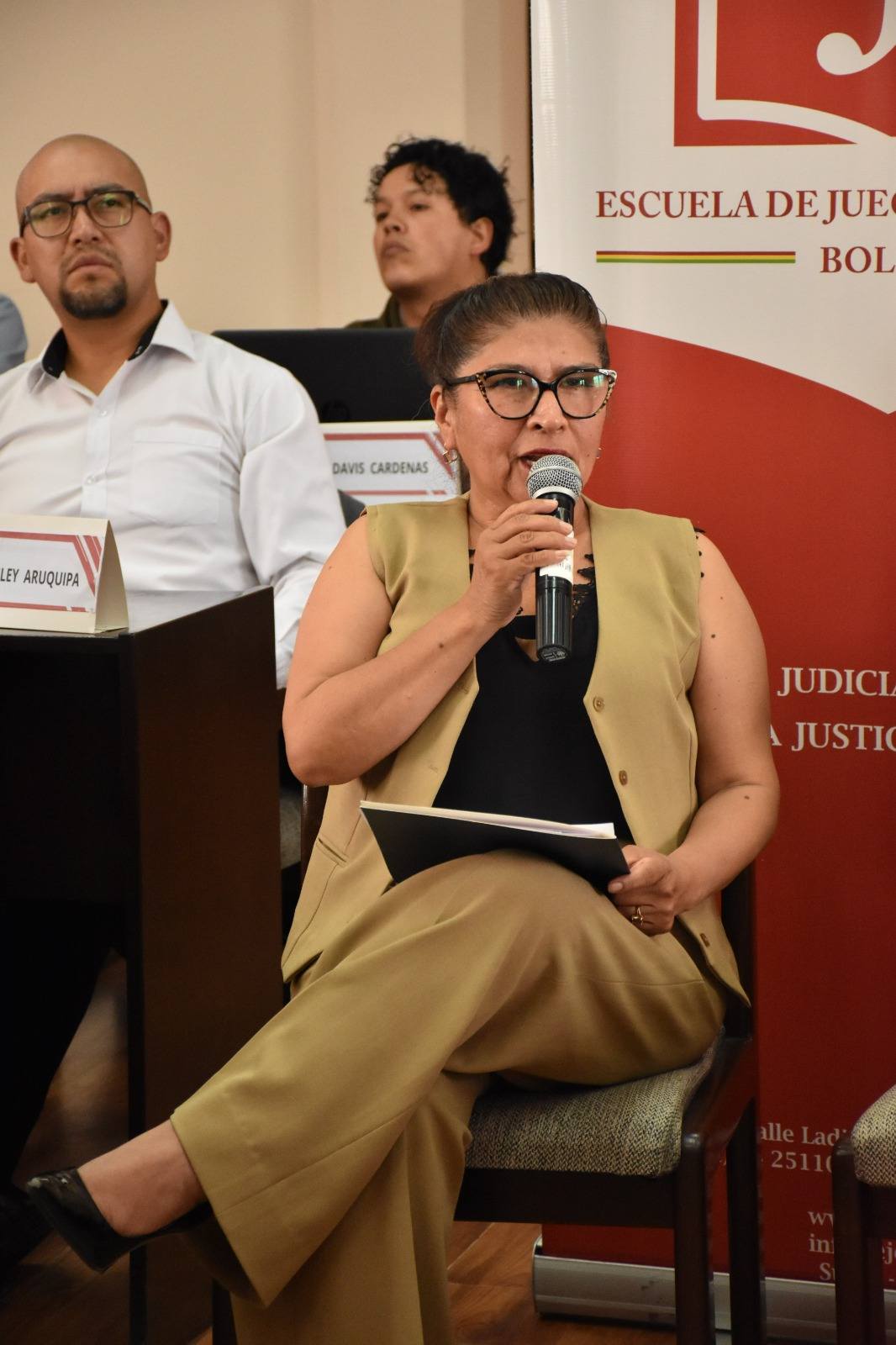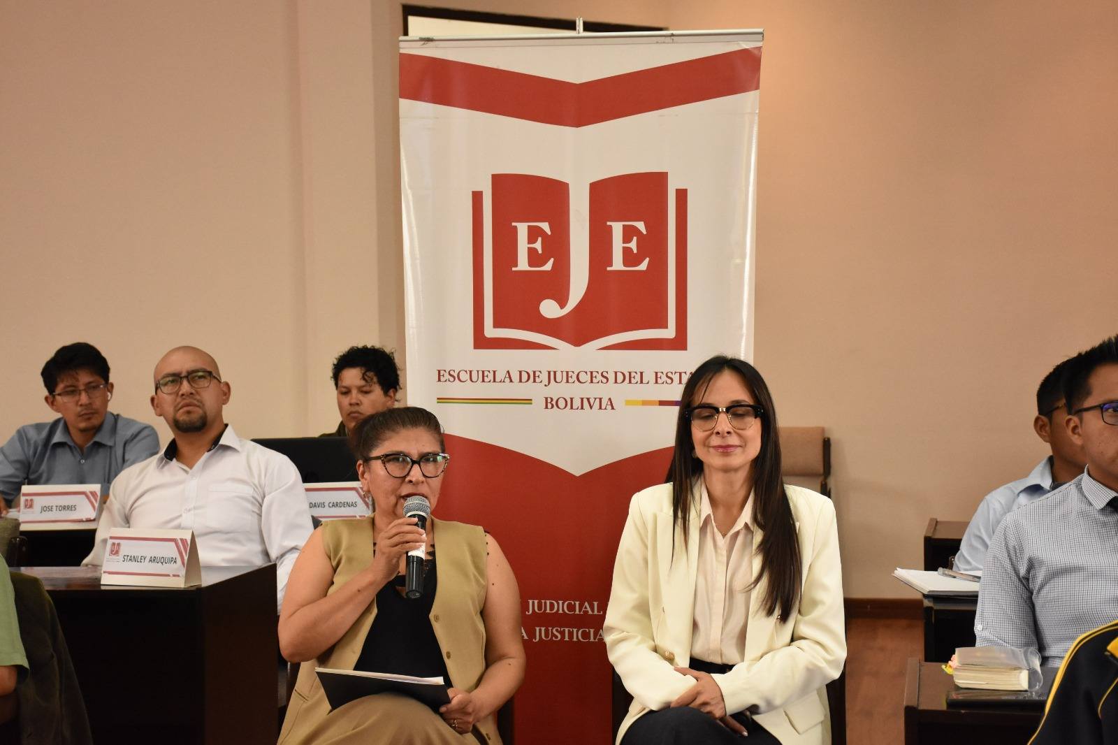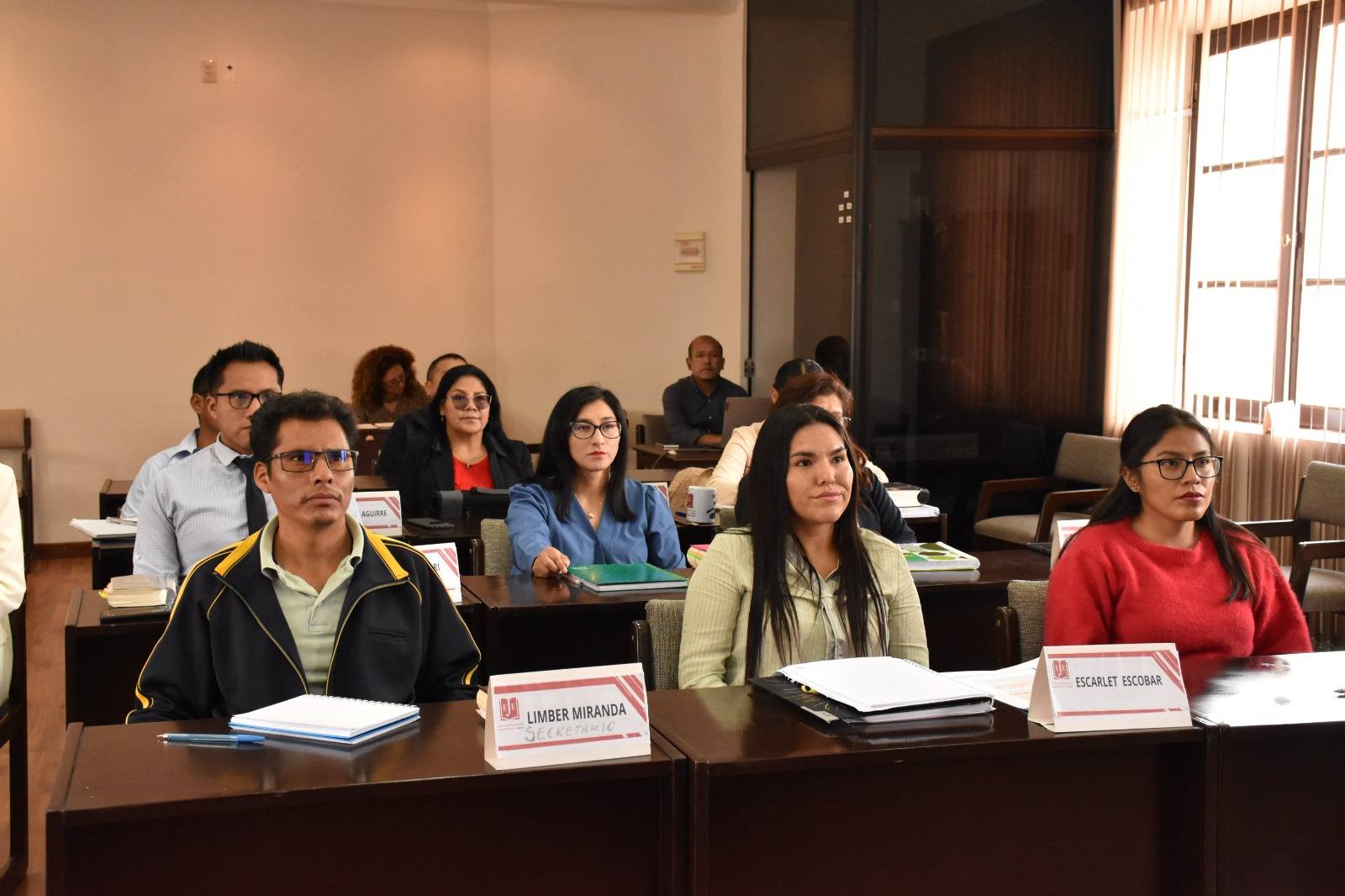 La autoridad estuvo acompañada por la Dra. María Candelaria Peñarrieta Vargas, Juez de Sentencia del Tribunal Departamental de Justicia de Tarija y actual docente del Módulo de Especialidad en Materia Penal.