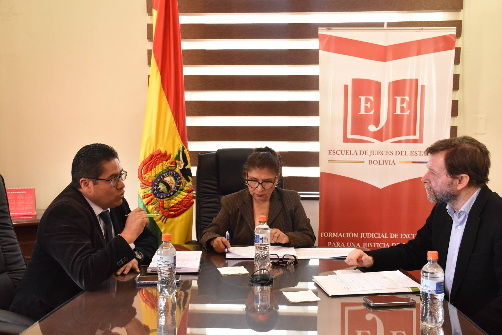 La Escuela de Jueces del Estado fue sede de una reunión de coordinación institucional que contó con la participación de la Dra. Marina Durán Miranda, Directora de la EJE; el Dr. Eduardo Serrano Ramos, Director de la Escuela de Fiscales; y el Dr. José Grinda González, Fiscal contra la Corrupción y la Criminalidad Organizada de España.