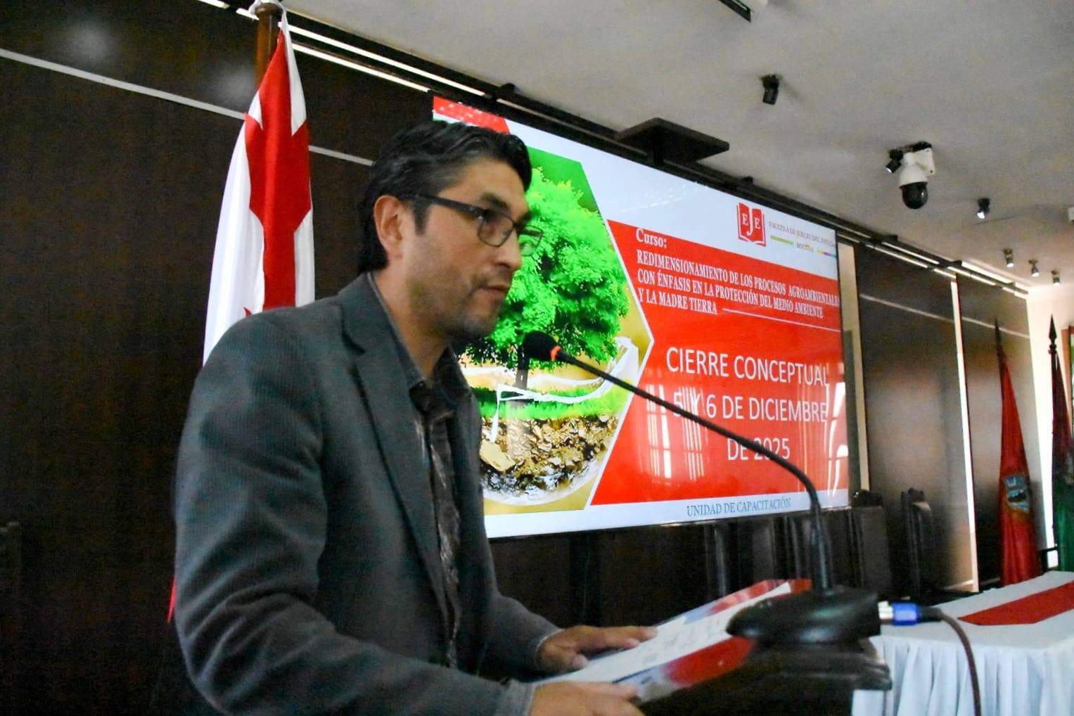 La Escuela de Jueces del Estado llevó a cabo la Fase Presencial del curso “Redimensionamiento de los Procesos Agroambientales con Énfasis en la Protección del Medio Ambiente y la Madre Tierra”, con la participación de juezas, jueces agroambientales y Servidores Públicos del Tribunal Agroambiental.