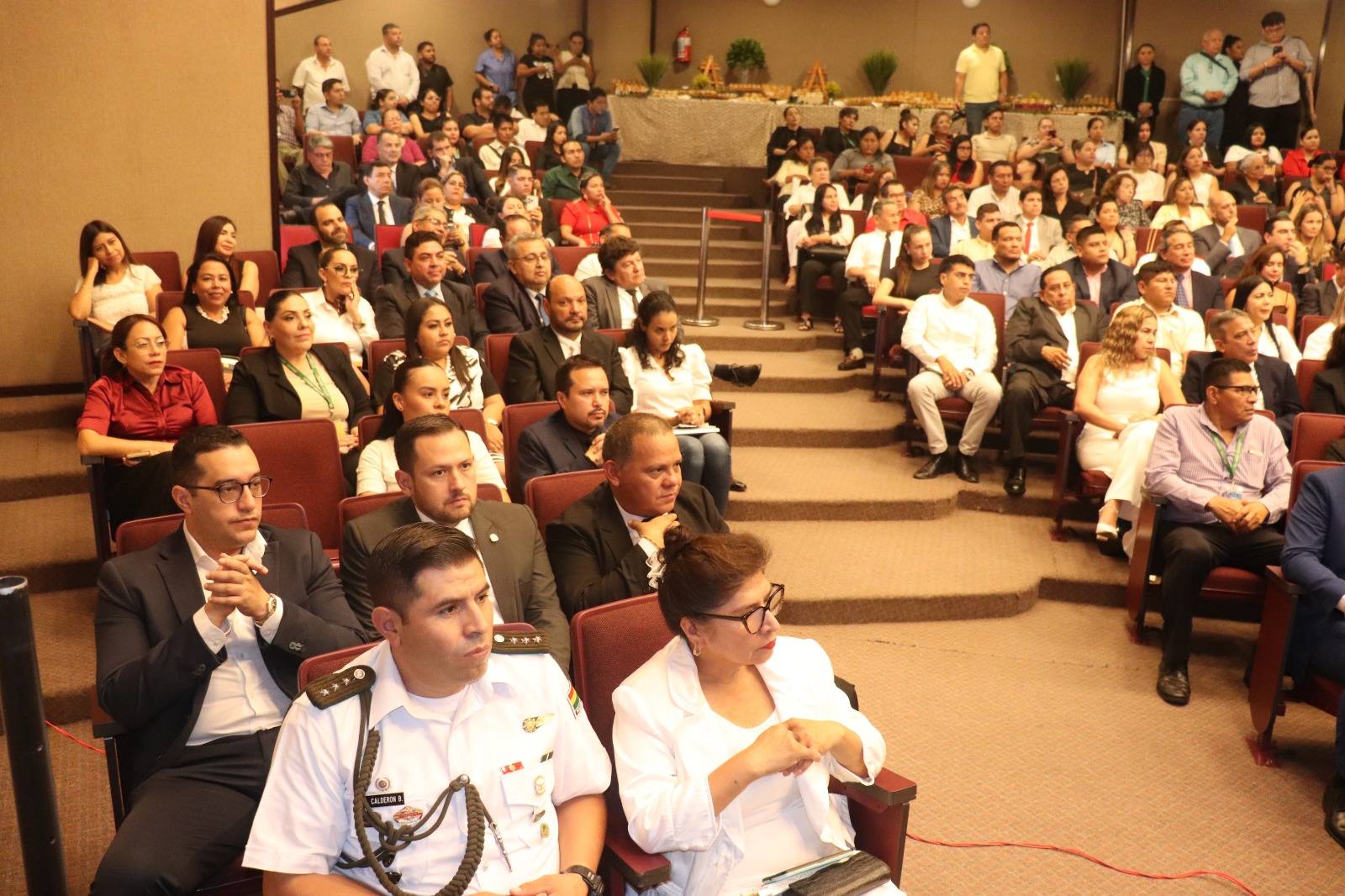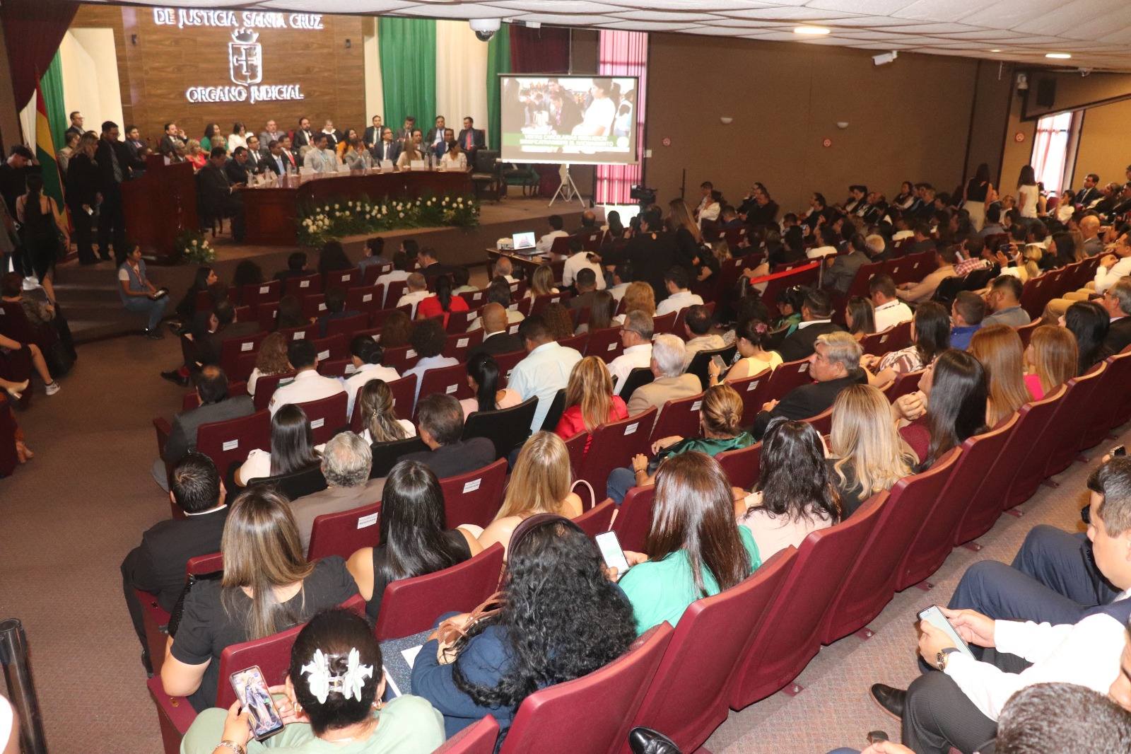 El acto contó con la presencia del Dr. Romer Saucedo Gómez, Presidente del Tribunal Supremo de Justicia; del Dr. Aldo Ismael Quezada Cerruti, Presidente del Tribunal Departamental de Justicia de Santa Cruz; así como de altas autoridades del Órgano Judicial y del Estado Plurinacional. Asimismo, participaron la Dra. Marianela Salazar Siles, Presidenta de la Asociación de Magistrados; la directiva de AMAGISC; jueces de Ejecución Penal; jueces de Instrucción Penal; juezas y jueces del departamento de Santa Cruz. De igual manera, asistió el Arq. Roberto Julio Castro Salazar, Presidente de la Cámara de Diputados, junto a servidoras y servidores judiciales del departamento de Santa Cruz.