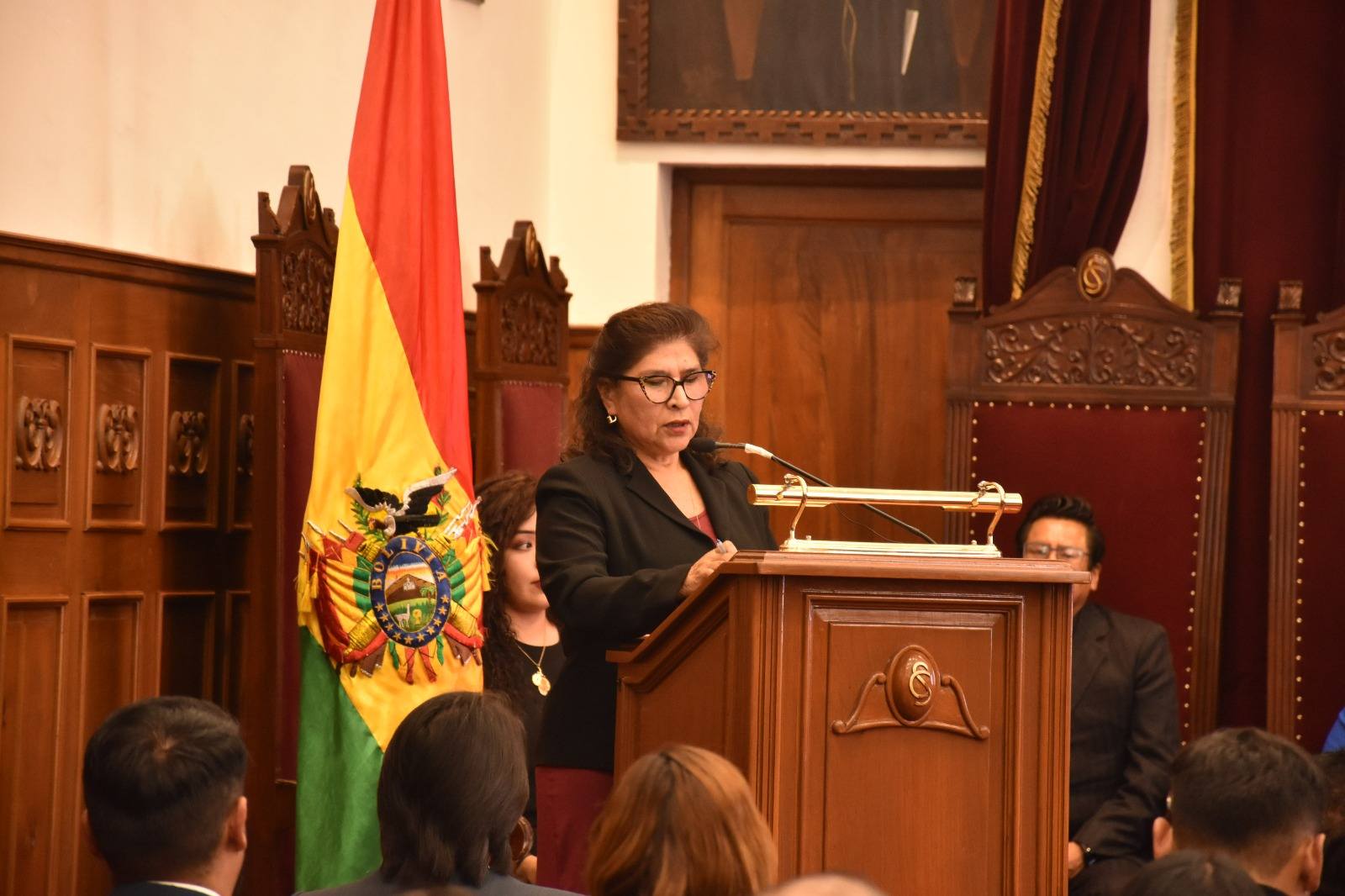 El acto principal fue liderado por el Dr. Romer Saucedo Gómez, Presidente del Tribunal Supremo de Justicia, Dra. Rosmery Ruiz Martínez, Decana del Tribunal Supremo de Justicia ,Dra. Roxana Chávez Rodas, Presidenta del Tribunal Agroambiental y la Dra. Marina Durán Miranda, Directora General de la Escuela de Jueces del Estado. Asimismo, el evento contó con la participación de las y los Magistrados del Tribunal Supremo de Justicia, diversas autoridades del ámbito judicial y académico, autoridades de la Universidad San Francisco Xavier de Chuquisaca y Domingo Savio quienes resaltaron la importancia de la capacitación continua y la investigación jurídica como pilares fundamentales para el fortalecimiento del sistema de justicia.