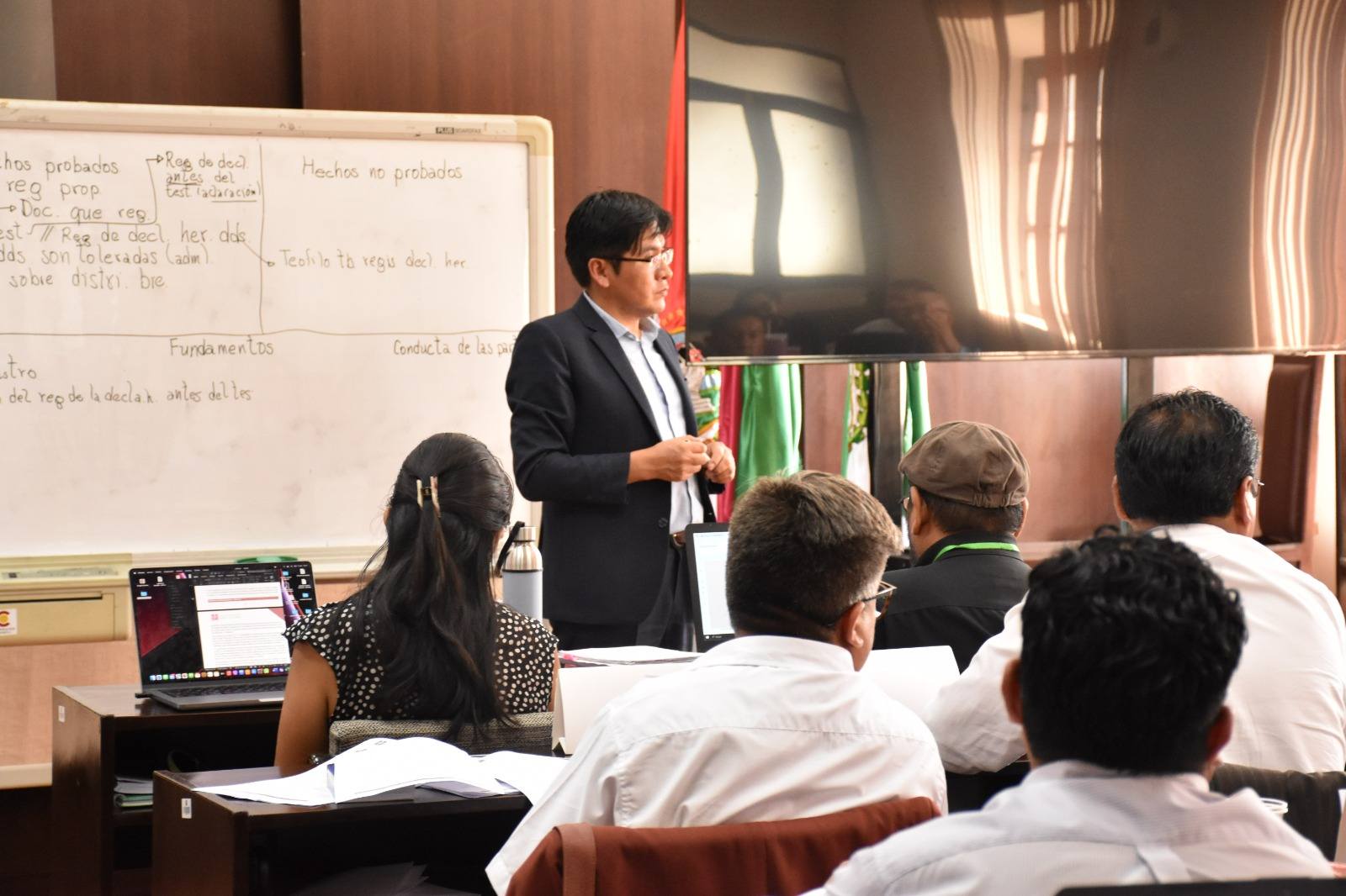 El módulo fue impartido por el Dr. Raúl Alejandro Gutiérrez Quisbert, Juez Público Civil y Comercial N. 25 del Tribunal Departamental de Justicia de La Paz, quien, a través de su experiencia en la práctica judicial, guió a las y los participantes en el análisis de los principales contenidos del derecho civil aplicados al ámbito jurisdiccional.