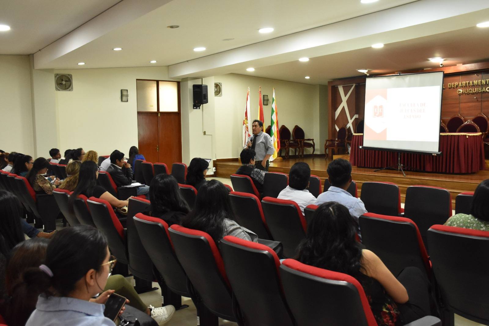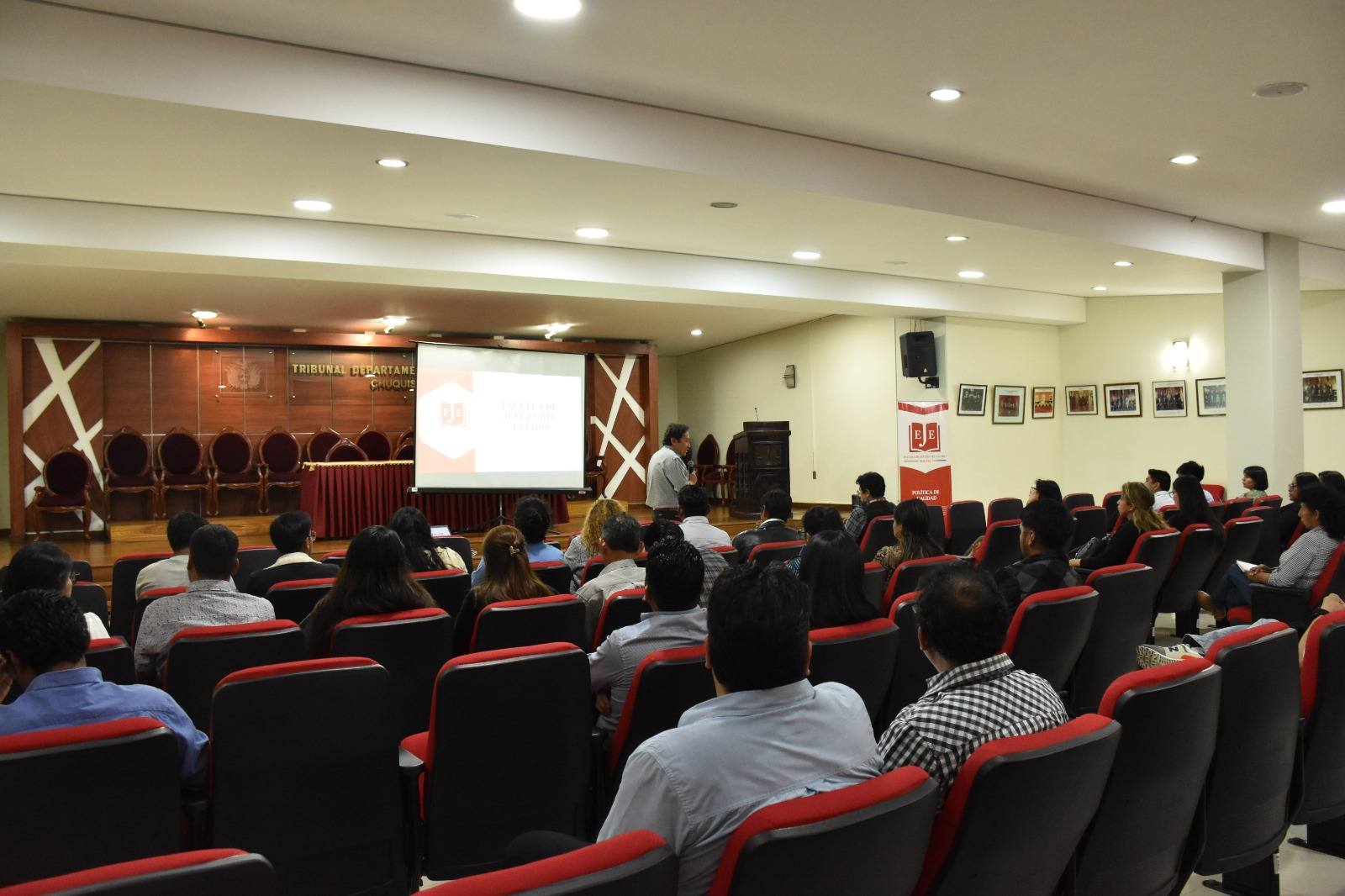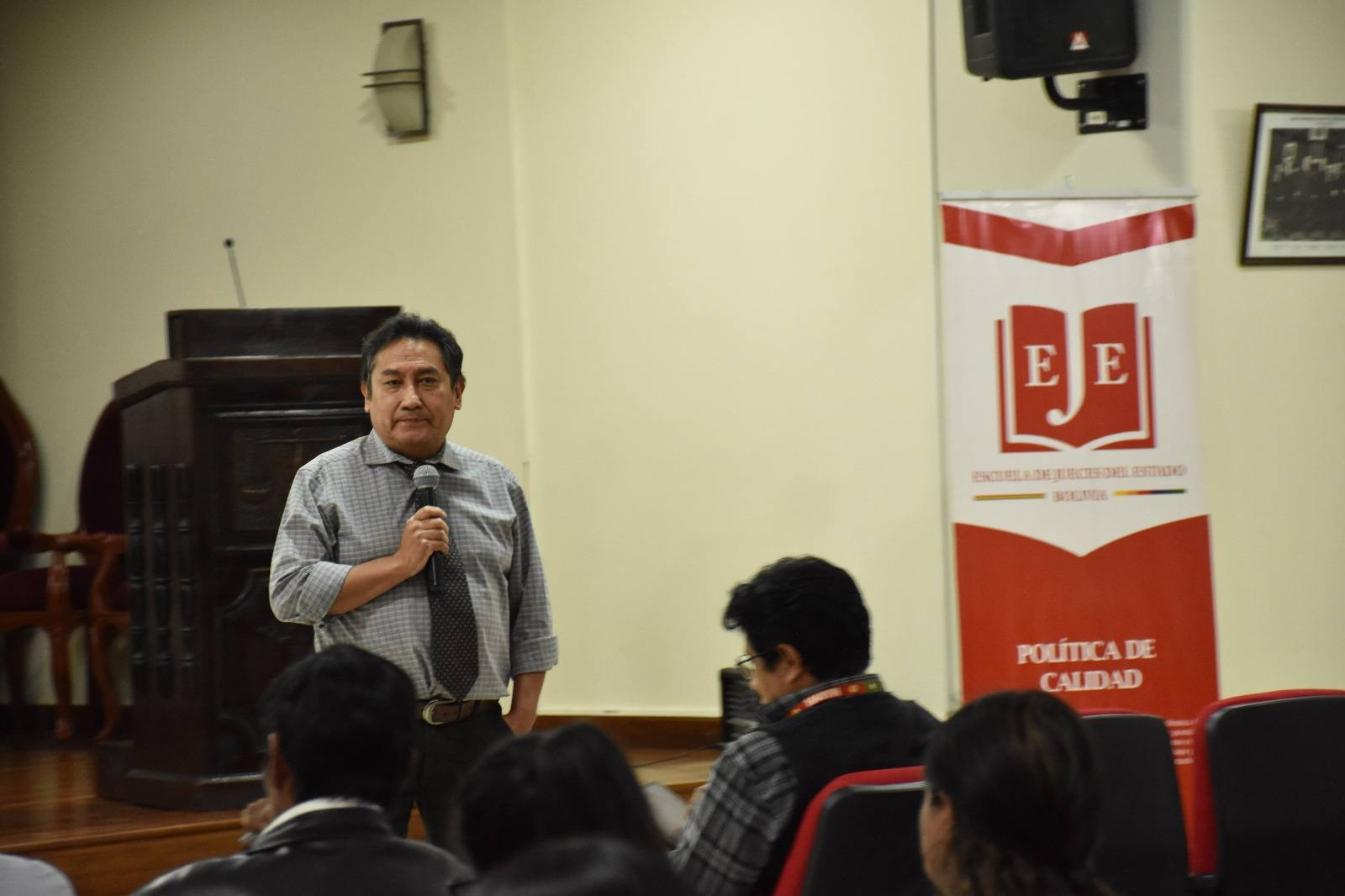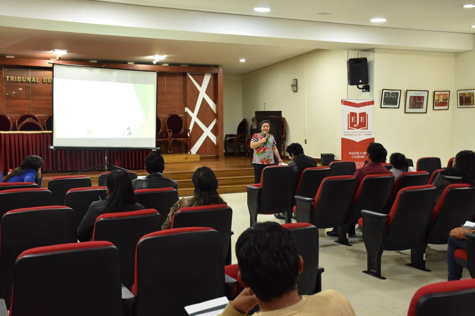 Posteriormente, la Dra. Grenny Bolling Viruez, Presidenta de la Asociación de Magistrados de Bolivia, desarrolló la temática en Materia Social Administrativa, enfocándose en el rol del defensor en el ámbito laboral, la fase de la demanda y excepciones dilatorias, así como la audiencia de juicio y la producción probatoria, generando un espacio de análisis especializado en el área.