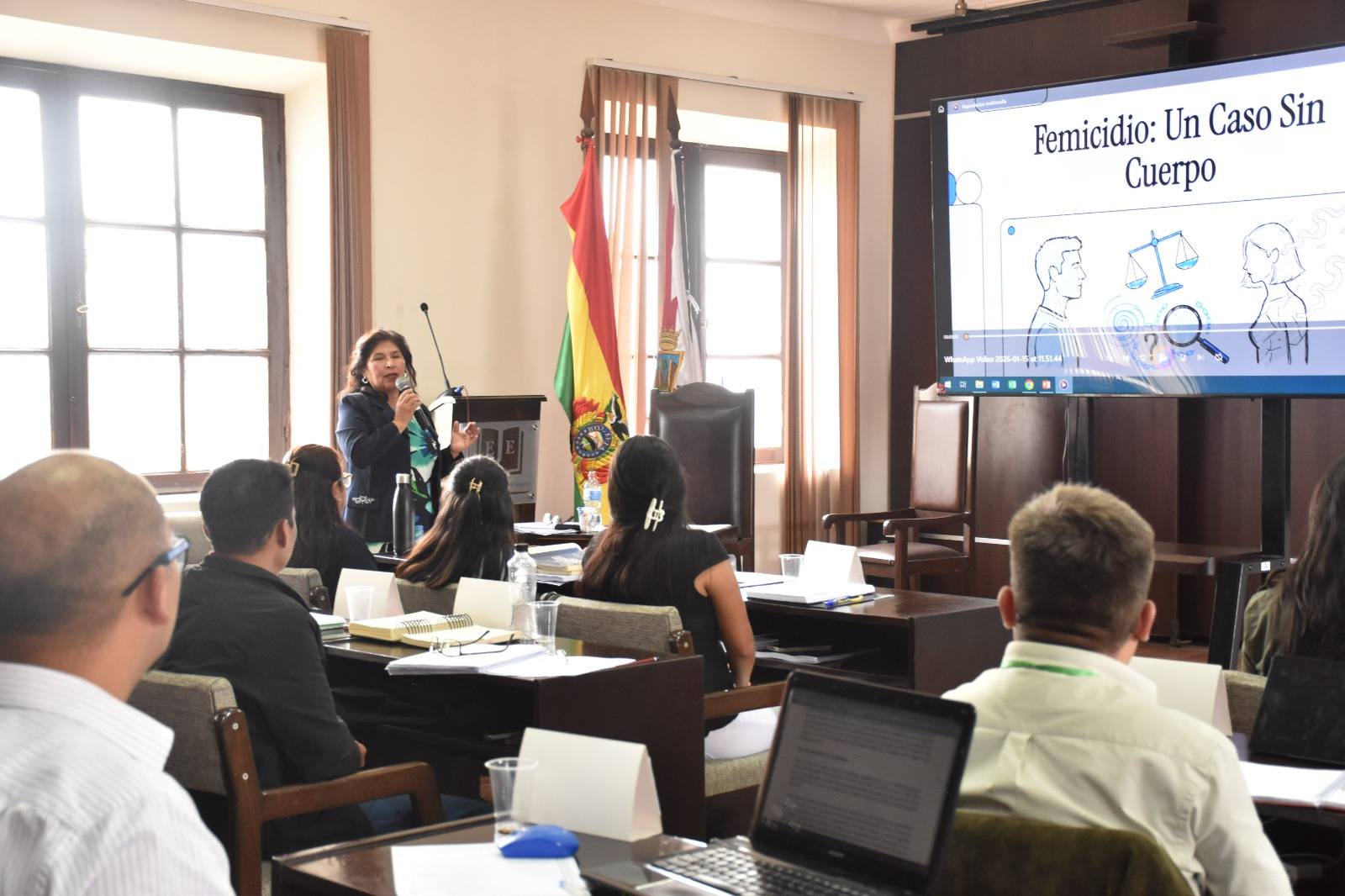 En el marco de las actividades académicas y de fortalecimiento de la investigación jurídica, la Dra. Marina Durán Miranda, Directora de la Escuela de Jueces del Estado, realizó la entrega de la Revista Jurídica N.° 6 a las y los estudiantes del Cuarto Curso de Formación y Especialización Judicial en el Área Ordinaria, durante el desarrollo de sus clases.
